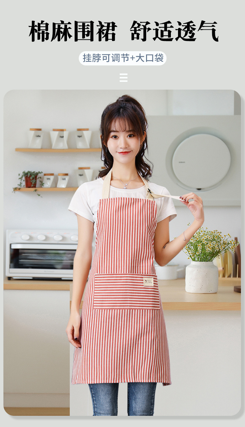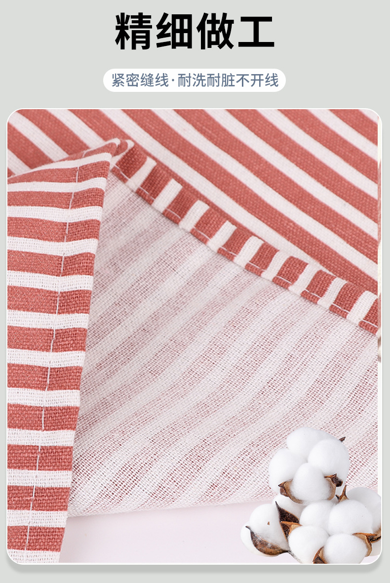 Product name: vertical stripe cotton apronMaterial: cotton and linenProduct packaging: OPP bagProduct weight: 100gItem number: 4494Packing quantity: 500Box gauge: 80*130*25